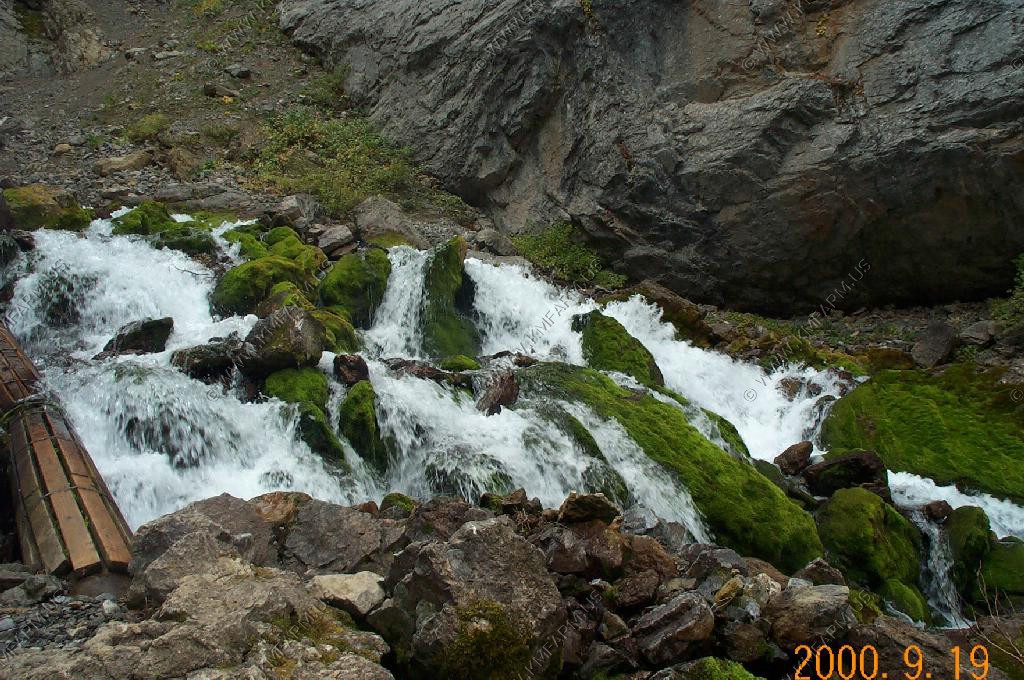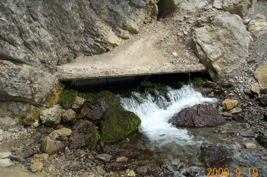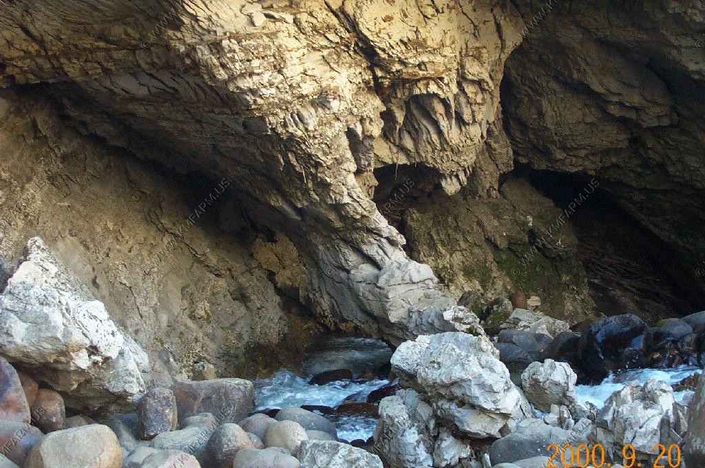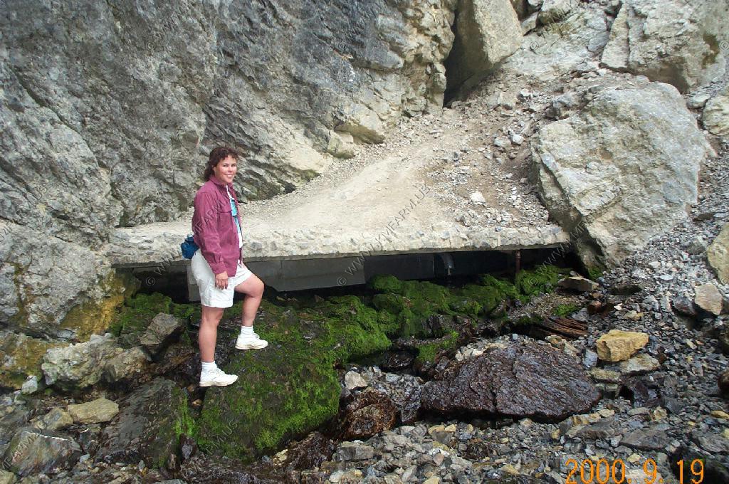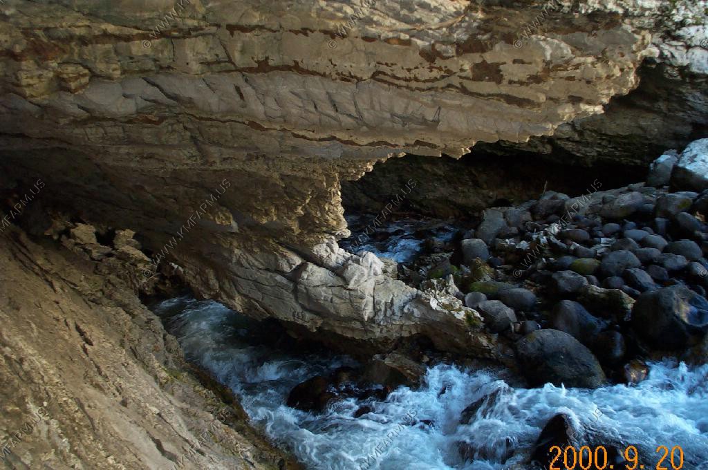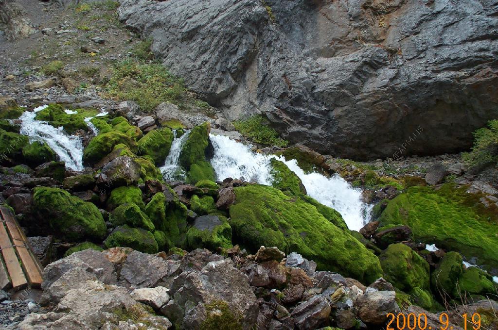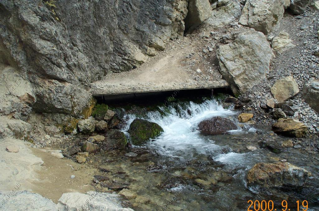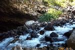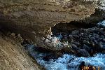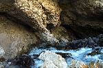 The perodic spring is a cold water geyser. The flow cycles on and off from late summer through winter. The water gushes out of a sheer ledge and cascades down a hillside to swift creek. Suddenly, the flow stops. After 12 to 18 minutes, the water gurgles to the surface and the cycle repeats.