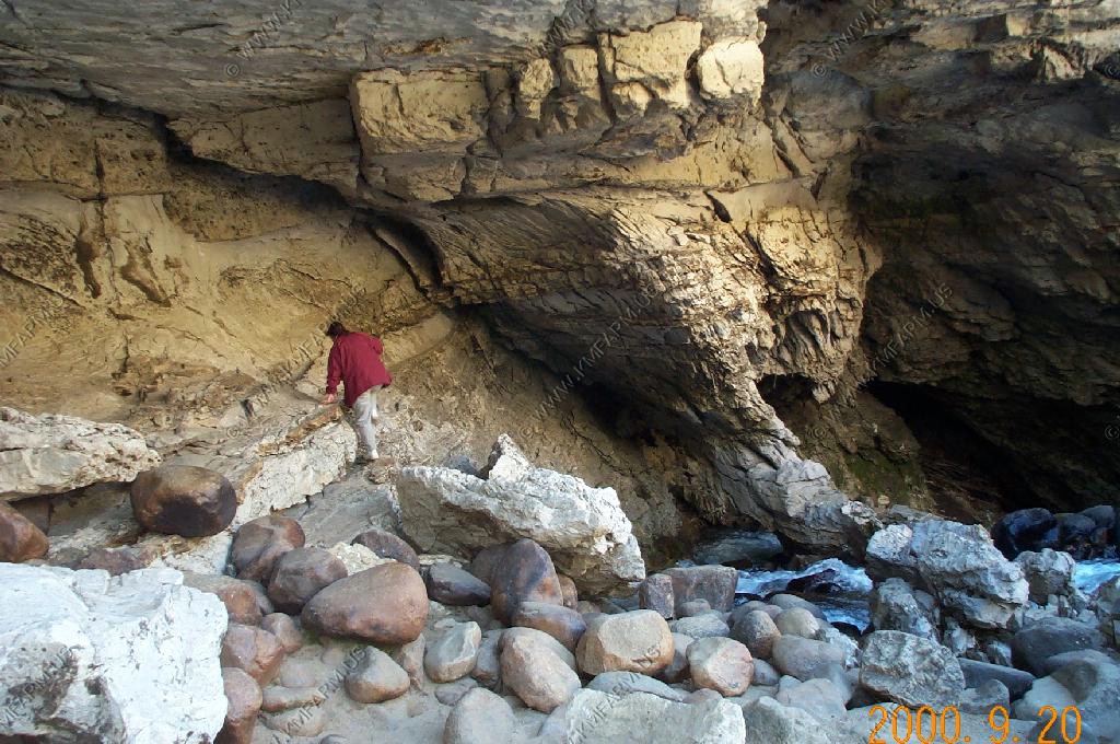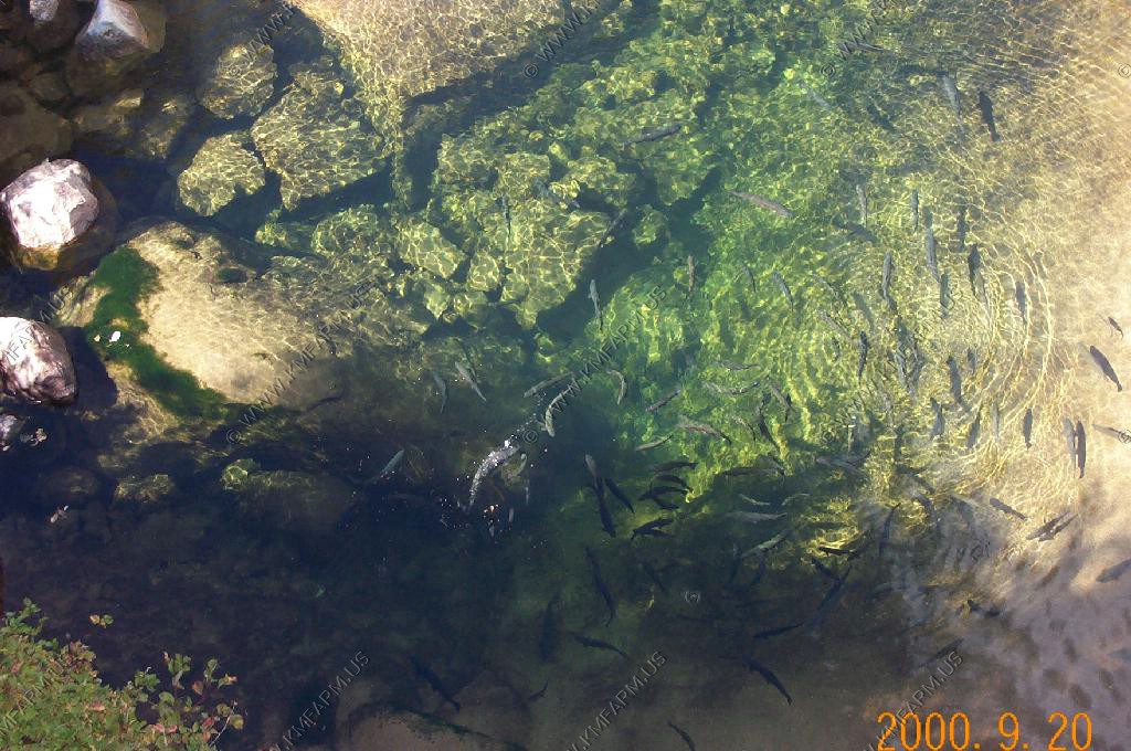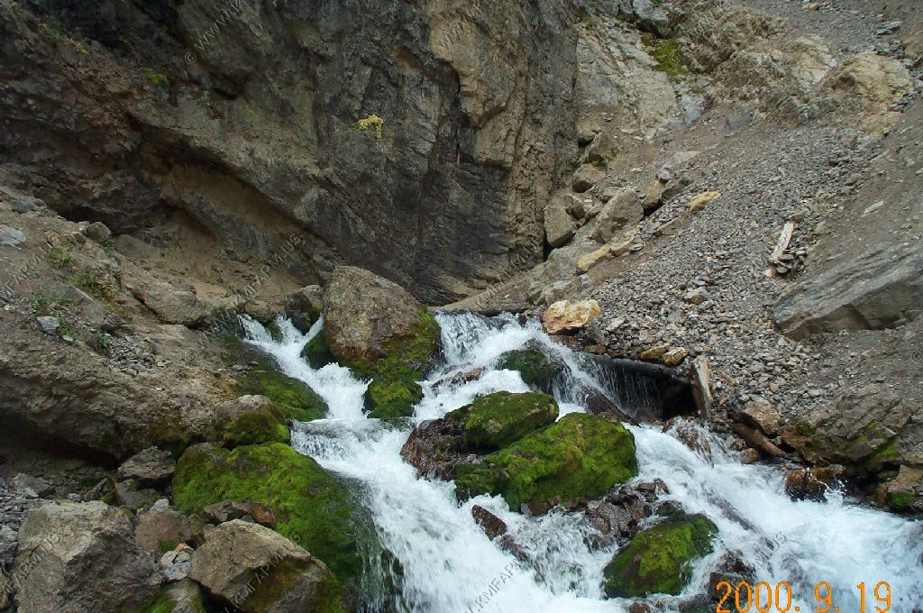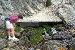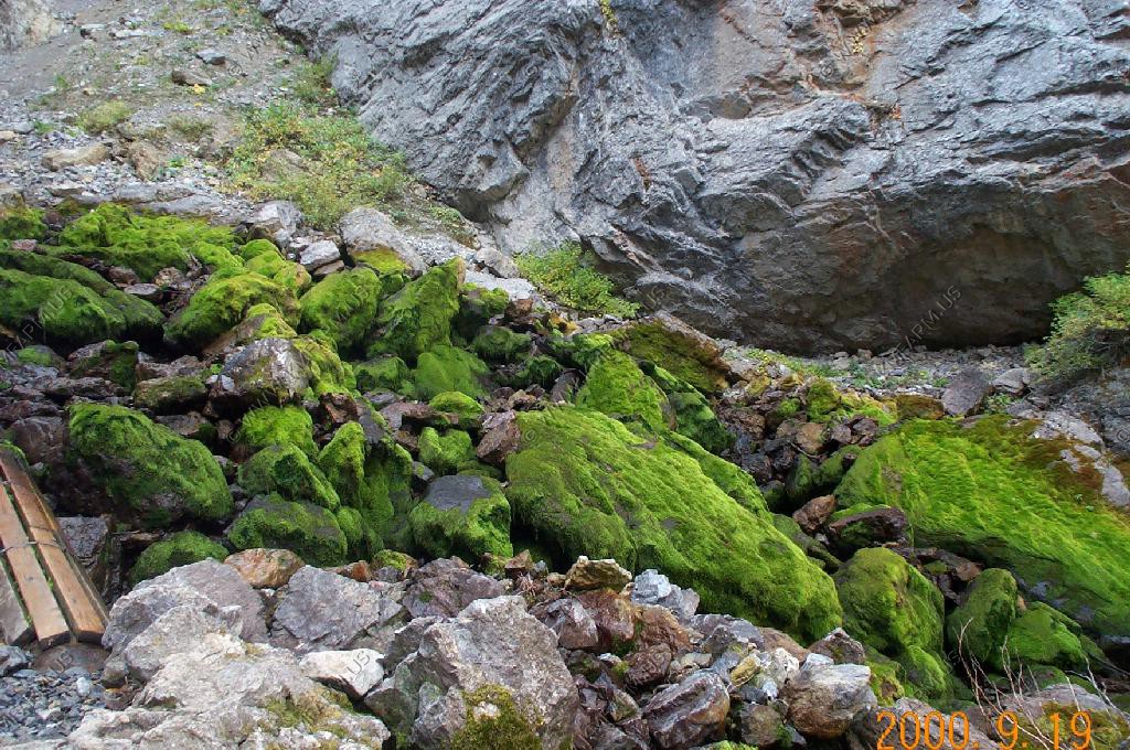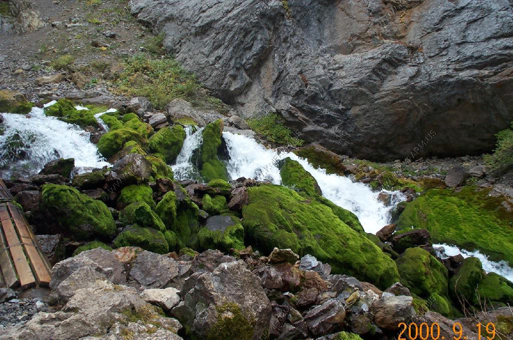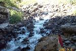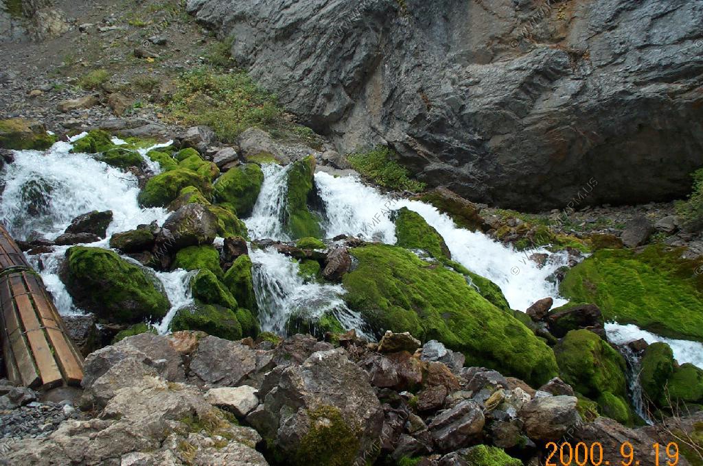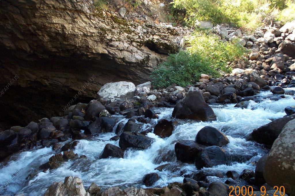 The perodic spring is a cold water geyser. The flow cycles on and off from late summer through winter. The water gushes out of a sheer ledge and cascades down a hillside to swift creek. Suddenly, the flow stops. After 12 to 18 minutes, the water gurgles to the surface and the cycle repeats.