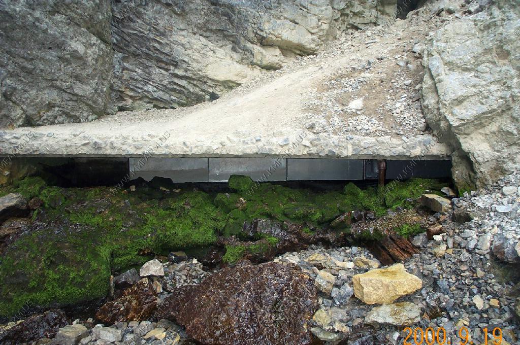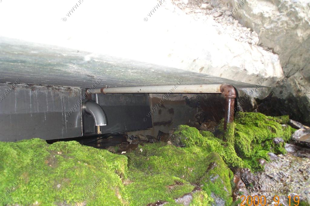 The opening that the water comes out. Very man made. It was stainless steel and supplies Afton with a good bit of its water.