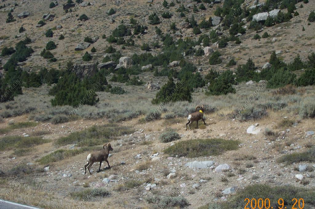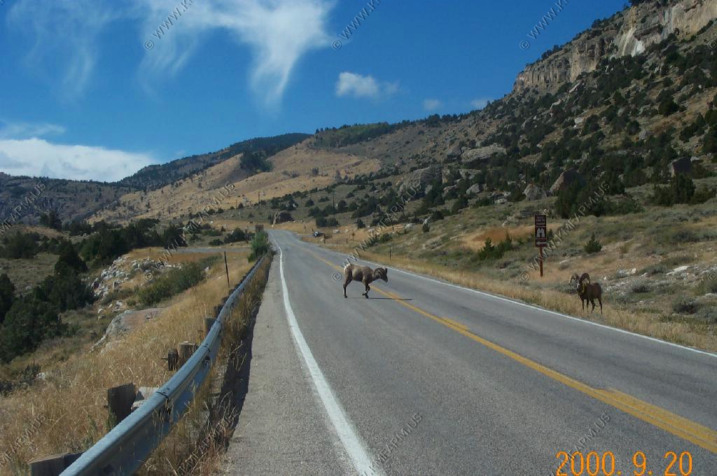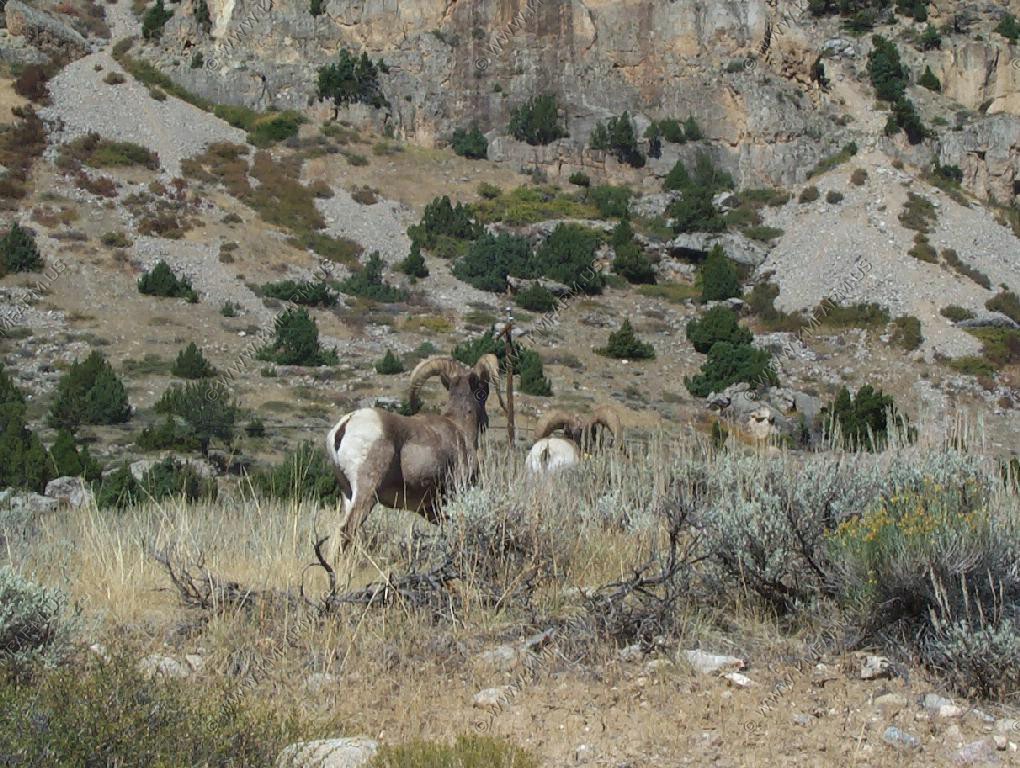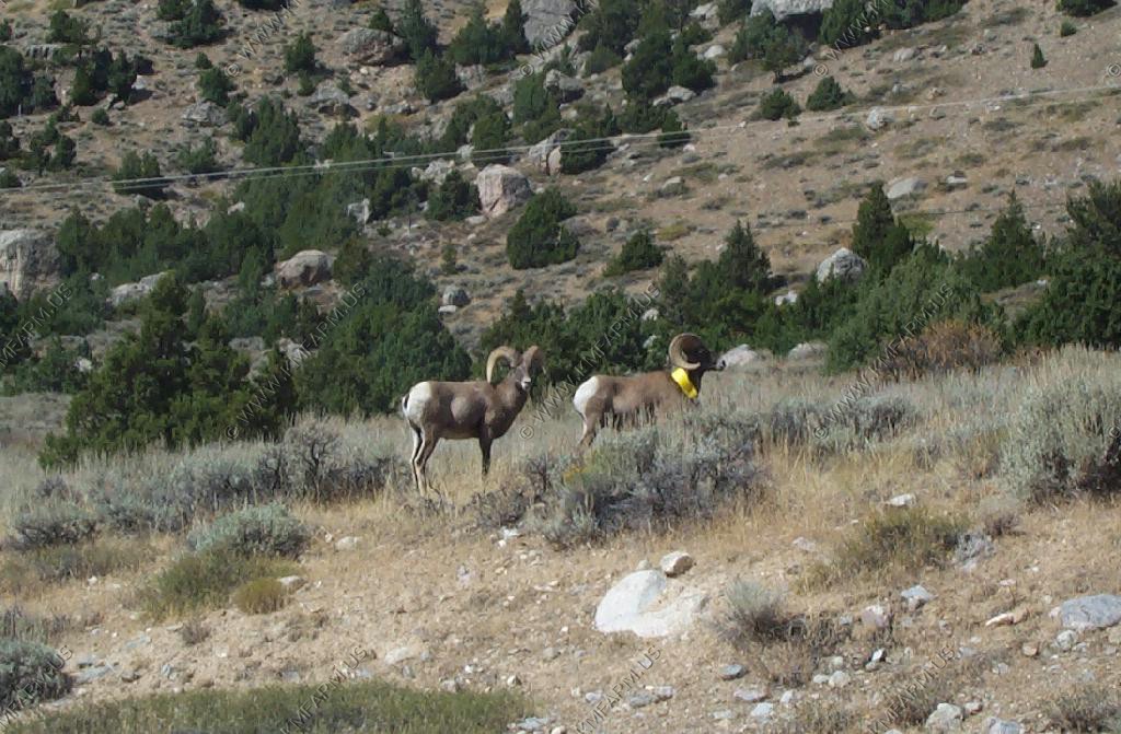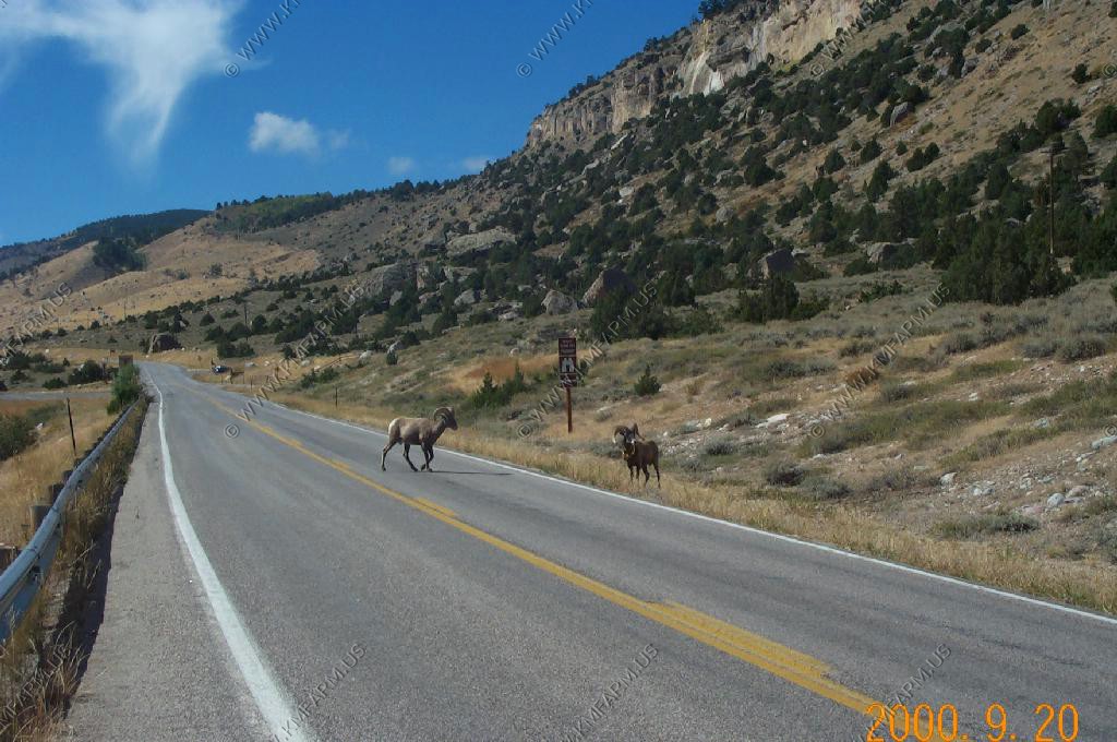Male Bighorn Sheep fighting along the road in Sinks Canyon
